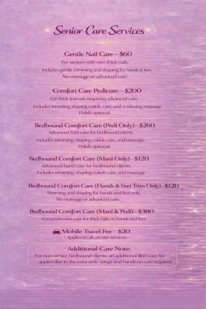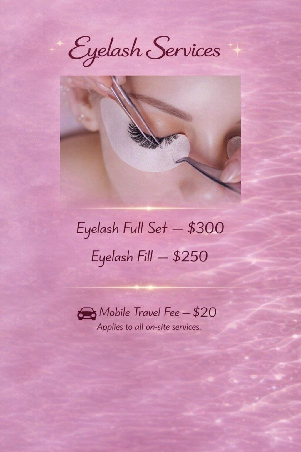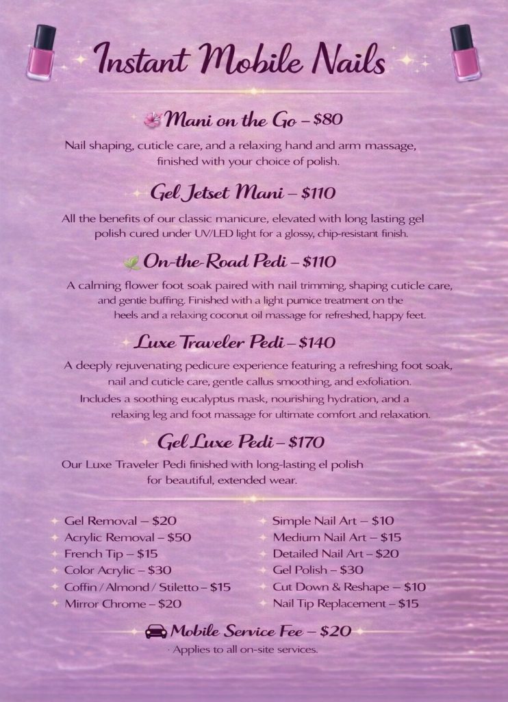 A one-time $20 travel fee applies to all mobile appointments.